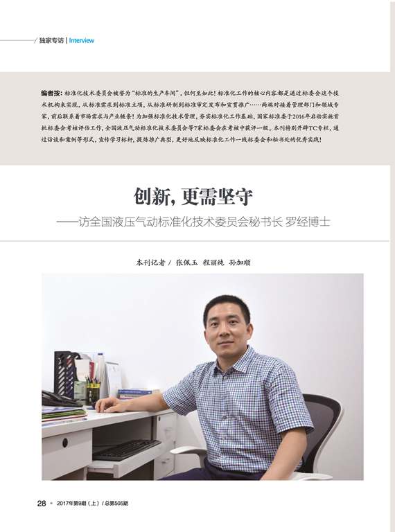 創(chuàng)新,更需堅(jiān)守-訪全國液壓氣動標(biāo)準(zhǔn)化技術(shù)委員會秘書長羅經(jīng)博士