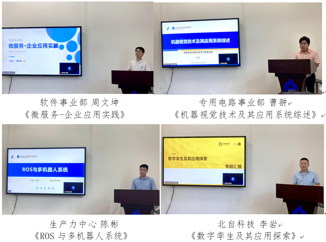 會上,來自軟件事業(yè)部的周文坤、專用電路事業(yè)部的曹翀、生產(chǎn)力中心的陳彬以及北自科技的李巖四名青年技術(shù)骨干,分別從基礎概念、發(fā)展趨勢、在智能制造領域的應用、關鍵技術(shù)點及常用工具幾個方面,進行了講解。通過詳細的論述,并結(jié)合豐富的實例,為參賽隊伍提供了技術(shù)支持,增加了青年在對應研究方向上的知識儲備,夯實了研發(fā)基礎。