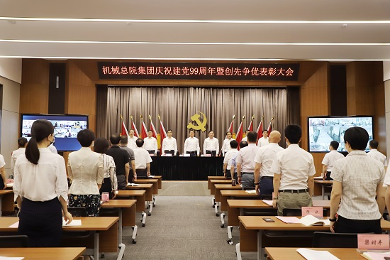 為慶祝中國(guó)共產(chǎn)黨成立99周年, 深入貫徹落實(shí)習(xí)近平新時(shí)代中國(guó)特色社會(huì)主義思想和黨的十九大及十九屆二中、三中、四中全會(huì)精神,深入落實(shí)新時(shí)代黨的建設(shè)總要求,推動(dòng)集團(tuán)黨建工作提質(zhì)、增效、升級(jí),推動(dòng)基層黨組織和黨員隊(duì)伍全面進(jìn)步、全面過(guò)硬,充分發(fā)揮黨支部戰(zhàn)斗堡壘和黨員先鋒模范作用,統(tǒng)籌抓好疫情防控和復(fù)工復(fù)產(chǎn),7月1日,機(jī)械總院集團(tuán)召開(kāi)慶祝建黨99周年暨創(chuàng)先爭(zhēng)優(yōu)表彰大會(huì)。黨委書記、董事長(zhǎng)王德成出席會(huì)議并講話,黨委副書記、總經(jīng)理王西峰主持會(huì)議,集團(tuán)黨委副書記李玉鑫宣讀表彰決定。 集團(tuán)領(lǐng)導(dǎo)班子成員出席會(huì)議。