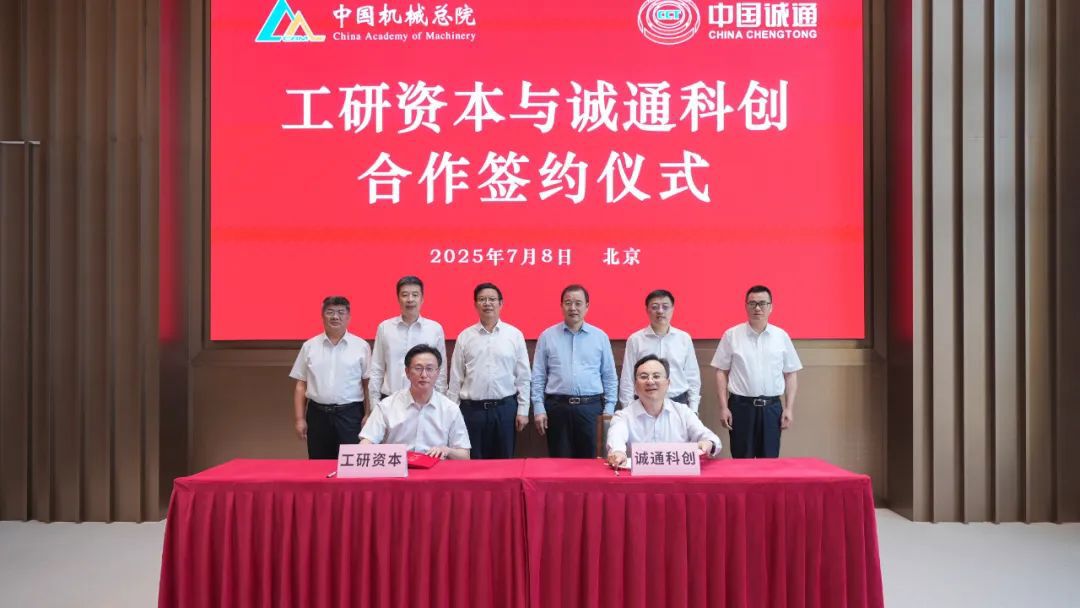 7月8日,中國機(jī)械總院黨委書記、董事長(zhǎng)王德成,黨委副書記、總經(jīng)理孟祥宇,黨委委員、總會(huì)計(jì)師、總法律顧問朱書紅帶隊(duì)拜訪中國誠通并出席科創(chuàng)基金合作簽約儀式。中國誠通黨委書記、董事長(zhǎng)奚正平,黨委副書記、總經(jīng)理郭祥玉,黨委委員、副總經(jīng)理童來明給予熱情接待。