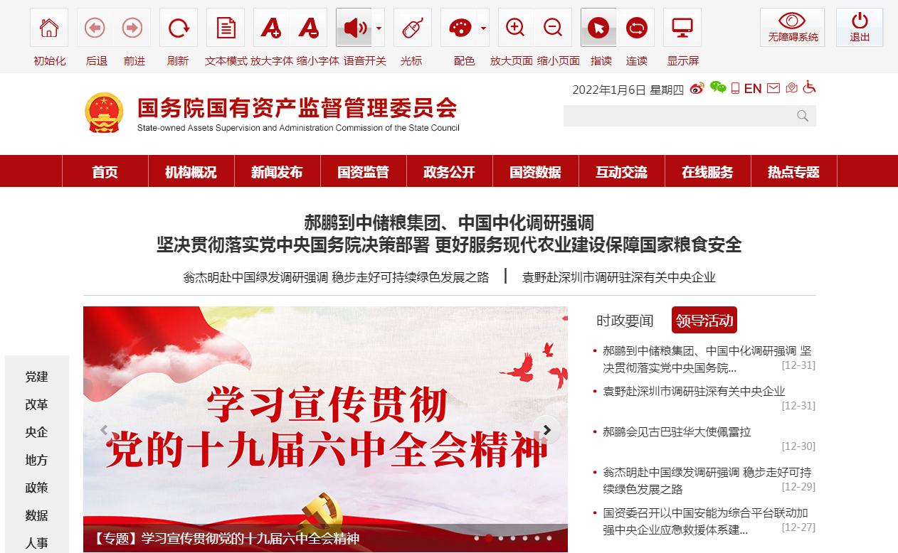 經(jīng)過精心準(zhǔn)備、反復(fù)測試,國資委網(wǎng)站適老化與無障礙改造相關(guān)功能于2021年12月31日正式上線運行。